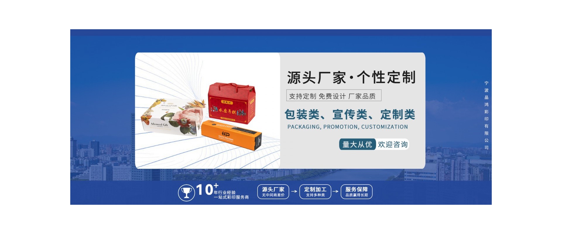 十来年深耕彩印领域,是专注为食品、美妆、电子行业提供“设计+印刷+交付”的一站式彩印服务商,致力于用精准色彩与高效交付,助力品牌传递核心价值。 公司配备海德堡XL102CD6+1与RA162彩印机,全自动压痕机,糊膜机,裱瓦机,全自动与半自动粘盒机,打钉机,在品质把控上,公司通过检查+印后全检”三重品控流程,确保每一件产品色彩精准、无瑕疵。服务场景覆盖三大核心领域:- 包装类:食品礼盒、化妆品包装盒、电子产品彩盒,适配产品存储与品牌展示需求;- 宣传类:企业画册、海报、宣传单页、展架画面,助力品牌线下推广与客户沟通;- 定制类:活动邀请函、品牌周边、节日贺卡,满足个性化场景需求。 成立至今,已累计服务多家企业客户,其中包括宁波金波汽配、博王汽配等知名品牌,业务覆盖10大行业。我们始终秉持“色彩还原品牌,品质赢得长期”的理念,以专业、可靠的服务,成为客户长期信赖的彩印伙伴。如需获取样品、查看色卡,或咨询定制报价,可拨打服务热线1377713362413396667172347472886@qq.com添加业务微信,我们将第一时间为你提供解决方案。 [