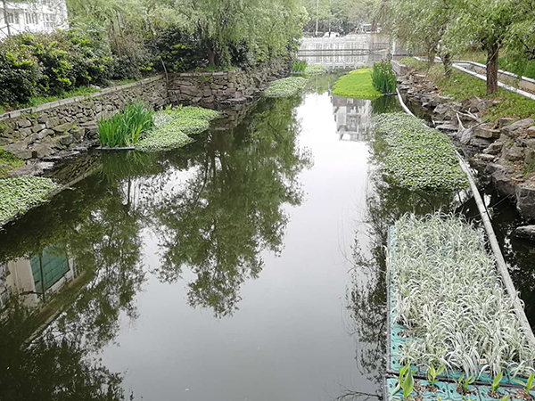 生态浮岛的水质净化针对富营养化的水体,利用生态工程学原理,降解、吸收水中的COD、、磷等。同时植物的遮蔽效果在抑制浮游植物繁殖方面起了很大作用。