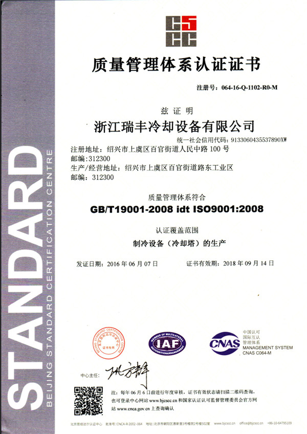 质量管理体系认证证书